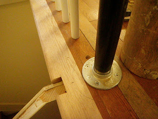 Sometimes, thinking didn't work so well...when working on cutting and installing a very important railing (this railing had been in Craig's grandparents' house), I cut all sorts of wacky compound, double bevel, mitred things.